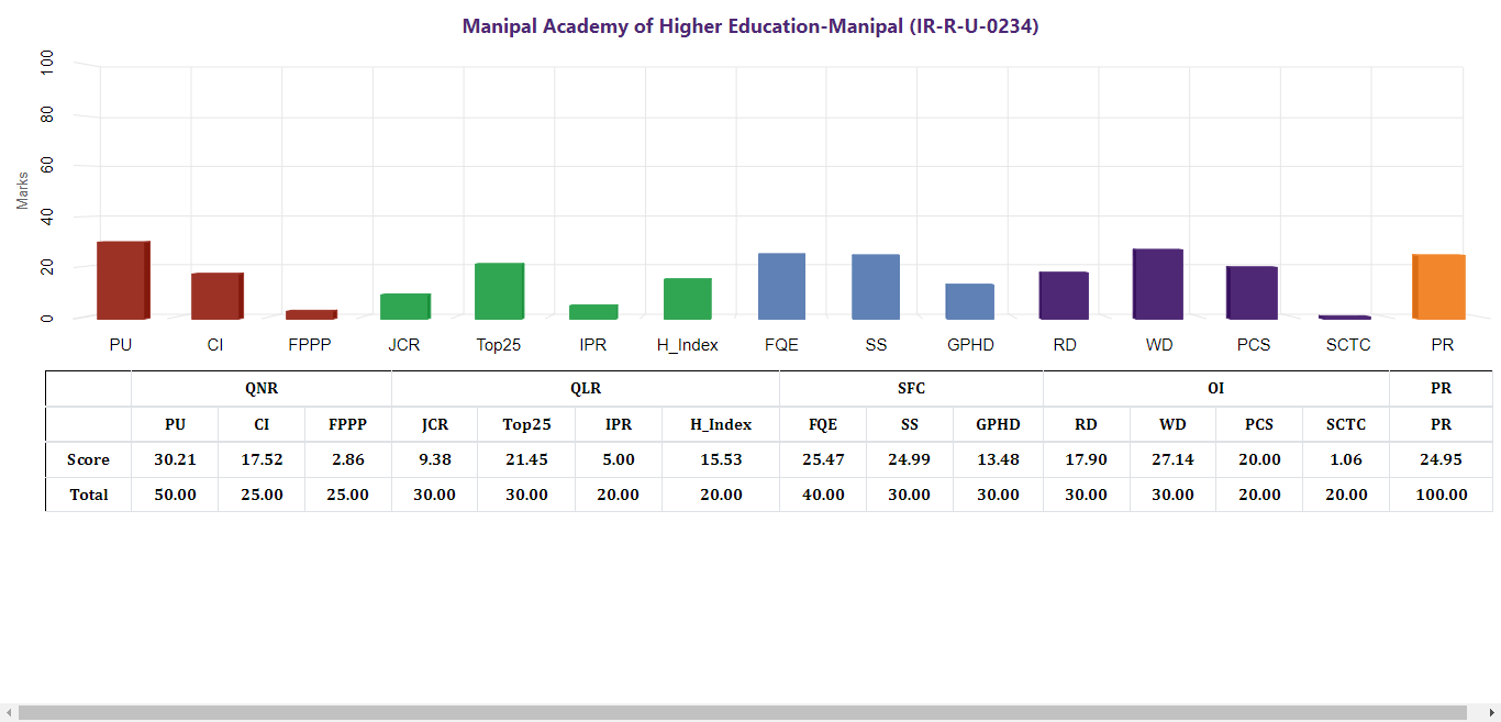 | IR-R-U-0234 | Manipal Academy of Higher Education-Manipal| QNR (100) | QLR (100) | SFC (100) | OI (100) | PERCEPTION (100) |