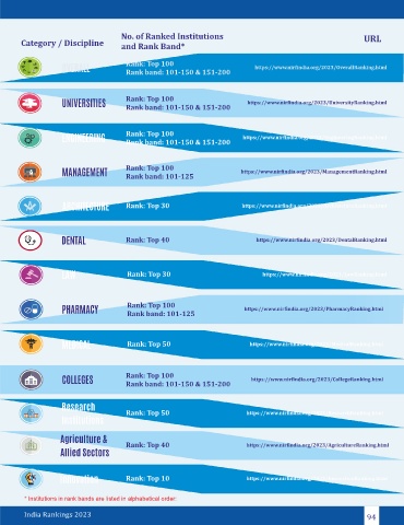 Institutions https://www.nirfindia.org/2023/ResearchRanking.html